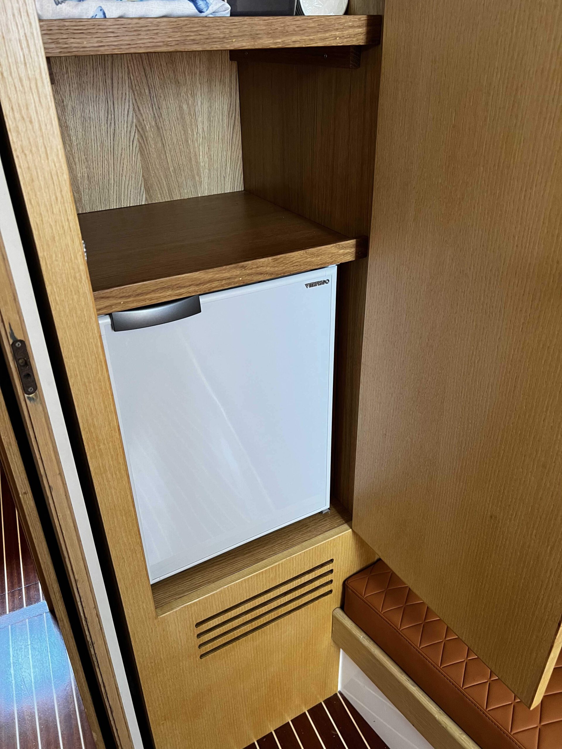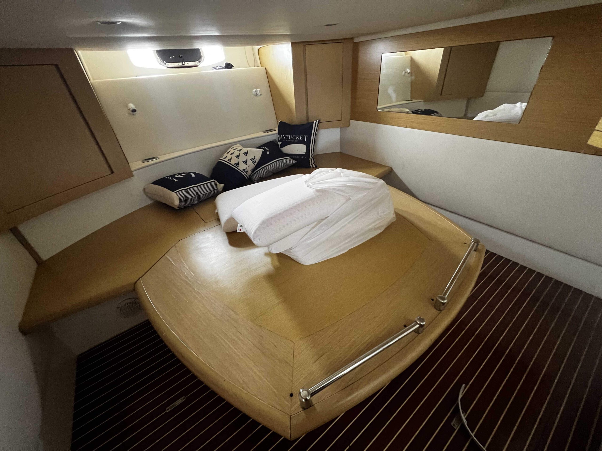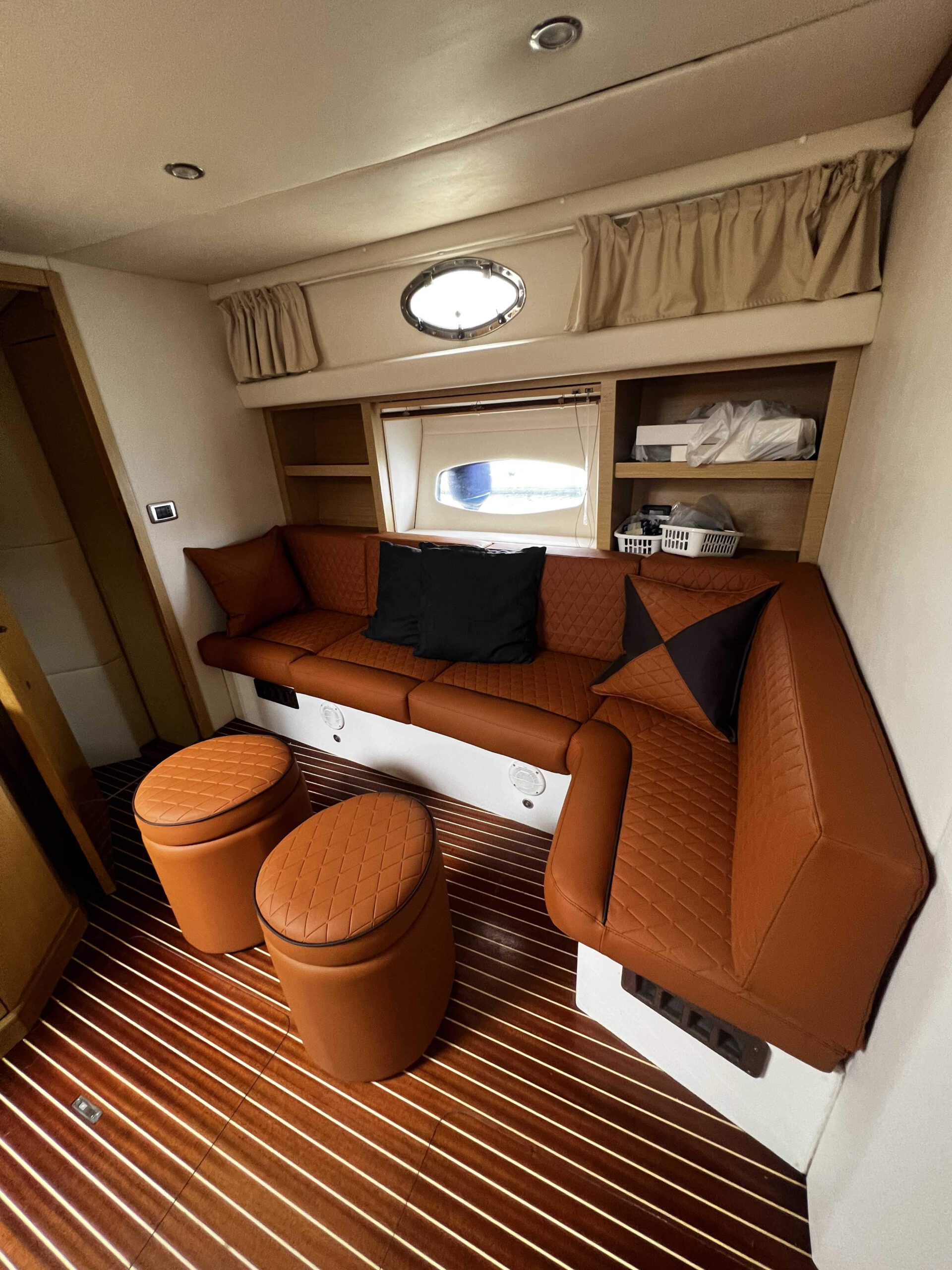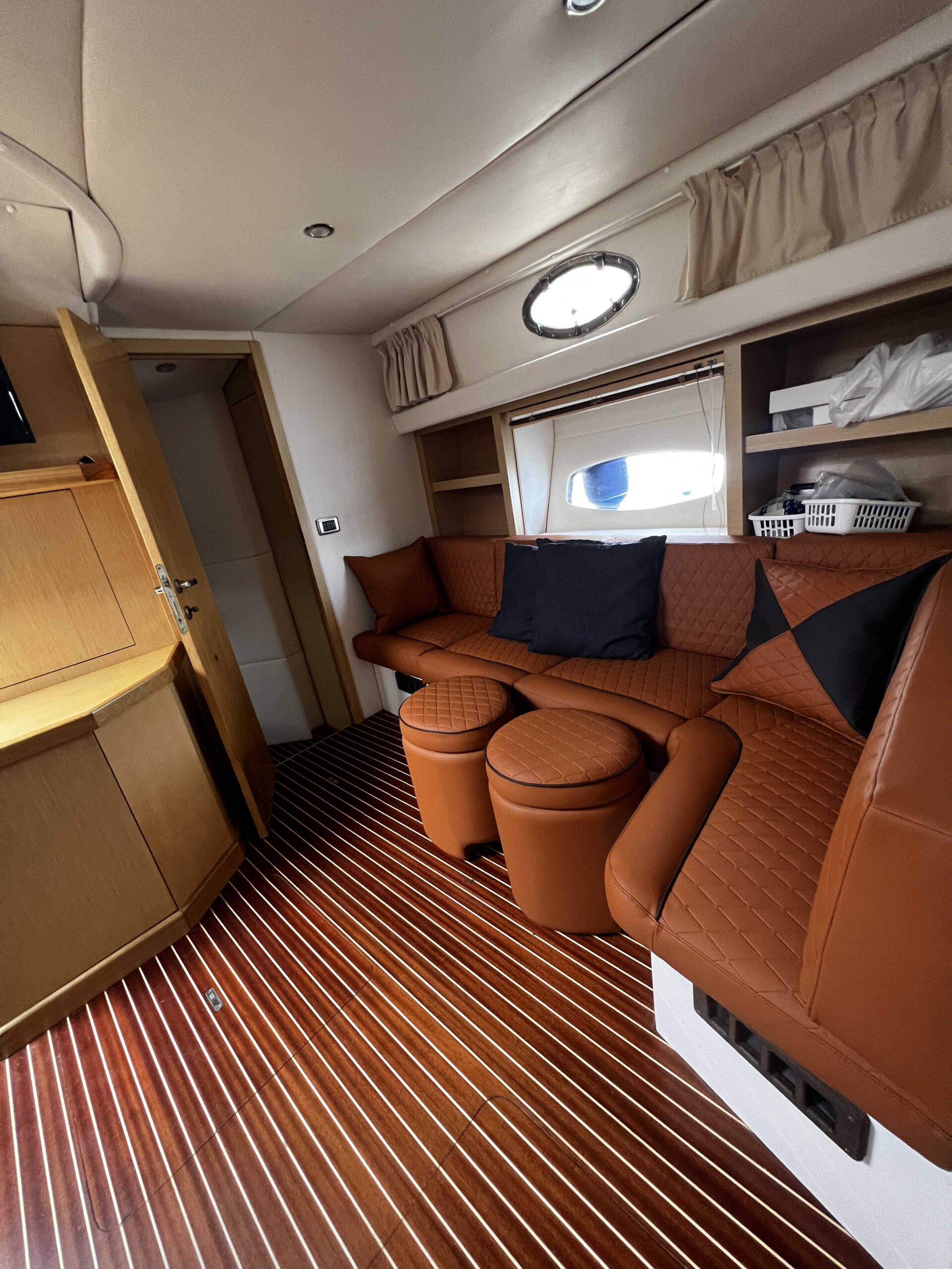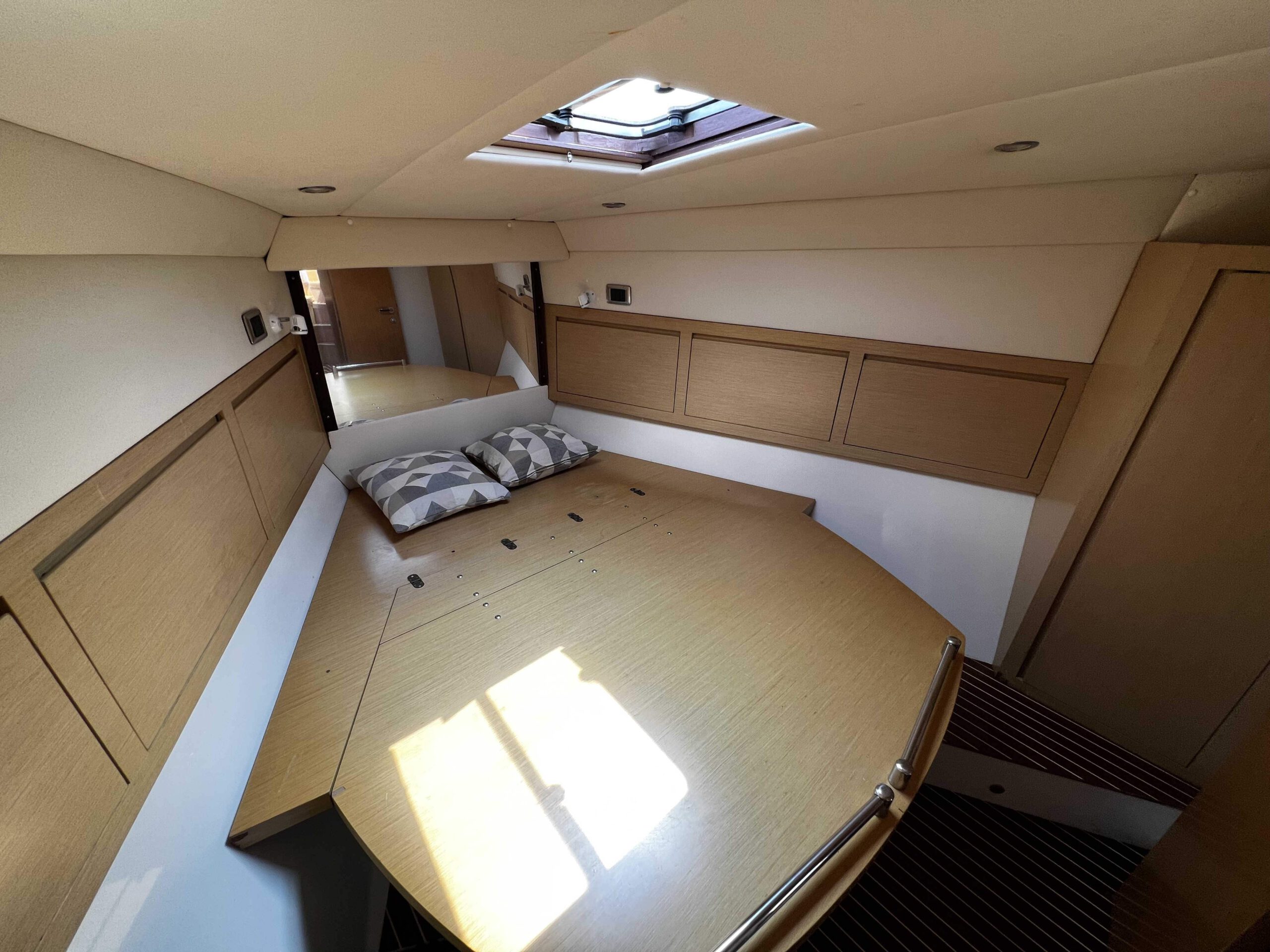 Bellissimo Bruno Abbate 46 design Pininfarina, motorizzato Volvo Penta IPS con circa 300 ore di navigazione. Hard top con ampie vetrate. Tappezzeria interna ed esterna nuova. Interni composti da ampia cabina armatoriale di prua con bagno privato, ampia cabina di poppa con letto in piano trasversale e bagno privato, dinette con divano ad L e divano trasformabile in terza cabina con separe scorrevole. N.2 Friogoriferi, piastre ad induzione, generatore, similteak, tendalino a chiusura totale, Pilota automatico Ecoscandaglio, GPS, radio stereo, Vhf.