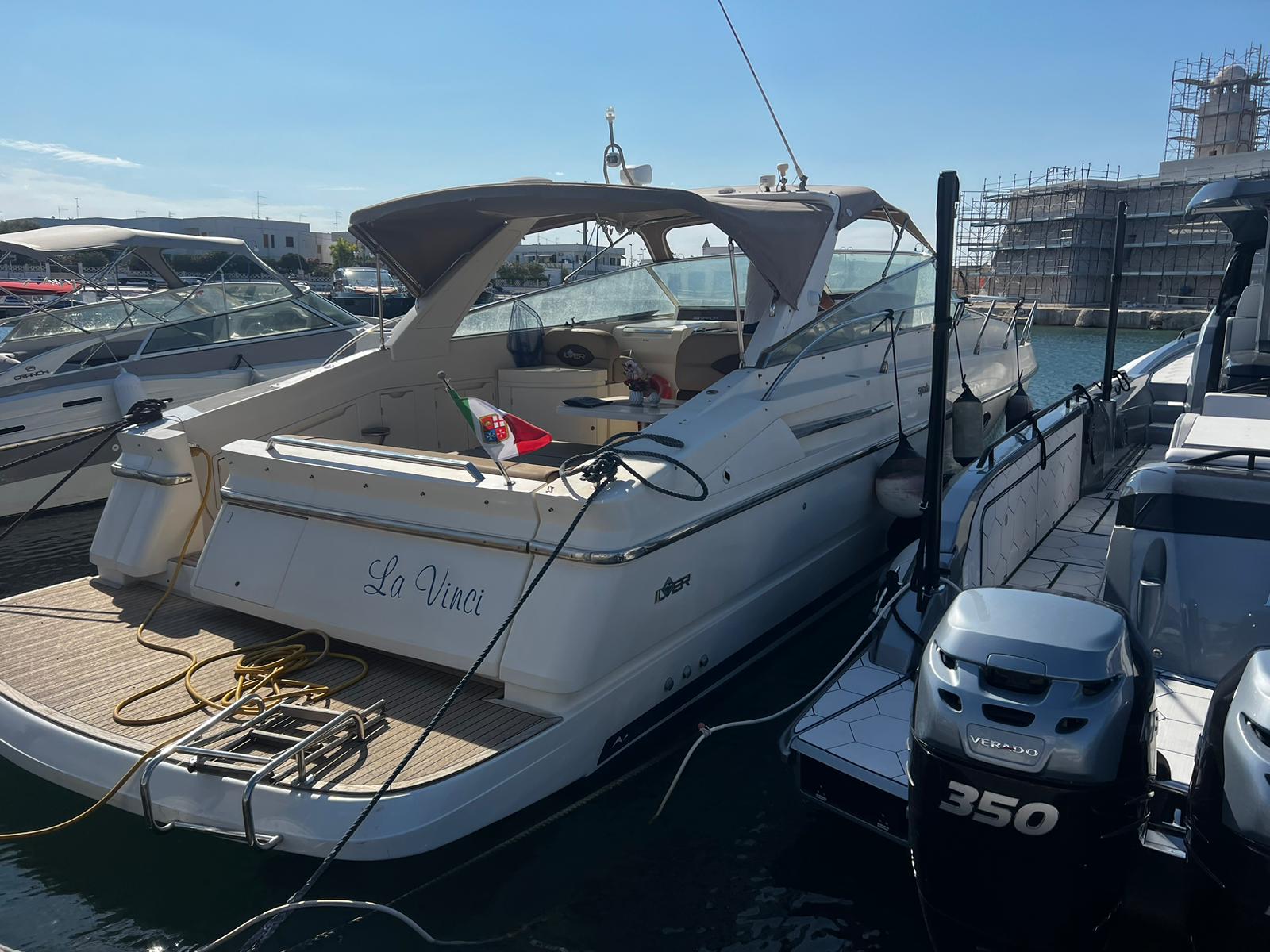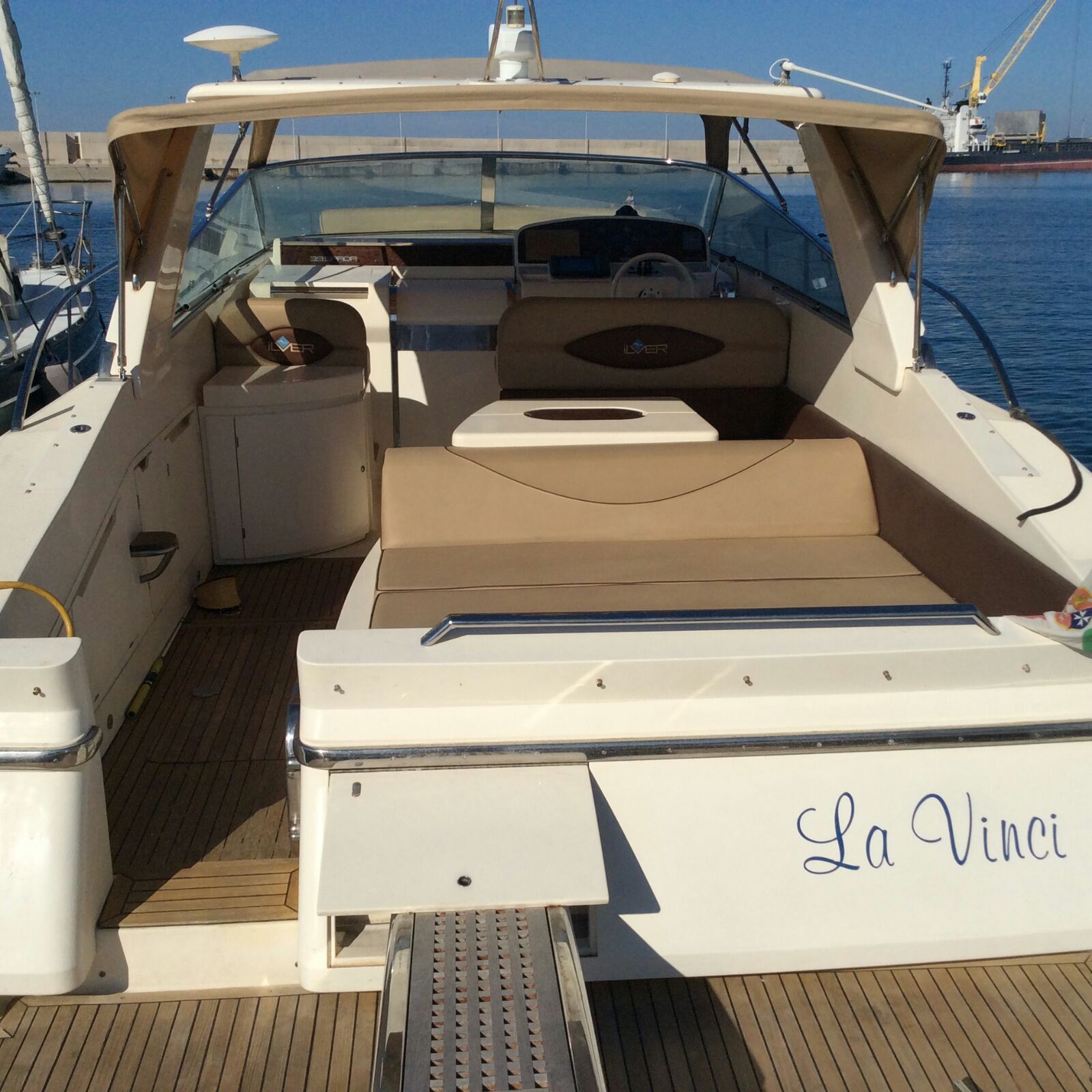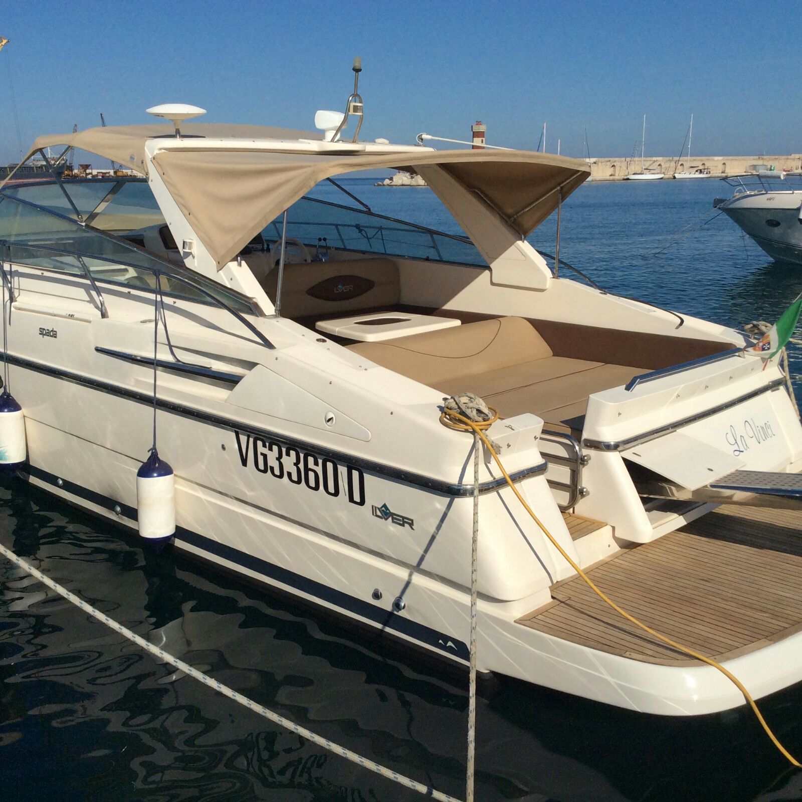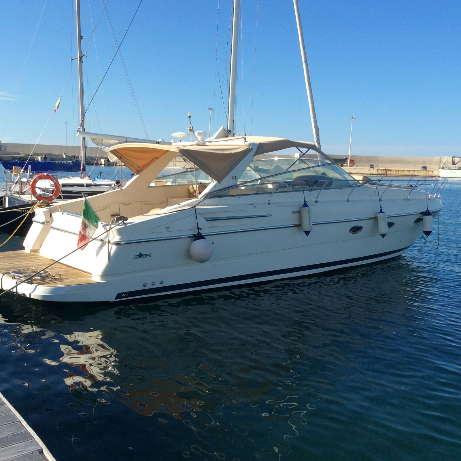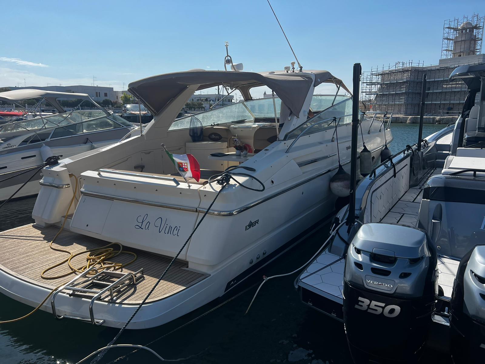 Ilver 39 Spada, Open con ampi spazi esterni ed interno. Motorizzato con 2 x 320 Mercruiser Diesel, con circa, anno 2002, N.2 cabine e N.2 bagni con dinette ed angolo cucina con pistre ad induzione,. lavello e frigorifero. Tendaggi e tendalino nuovo. Completo di elica di prua, cuscineria completa di prua e di poppa, aria condizionata, teak su piano di calpestio. Imbarcazione in ottimo stato completamente restrutturata.