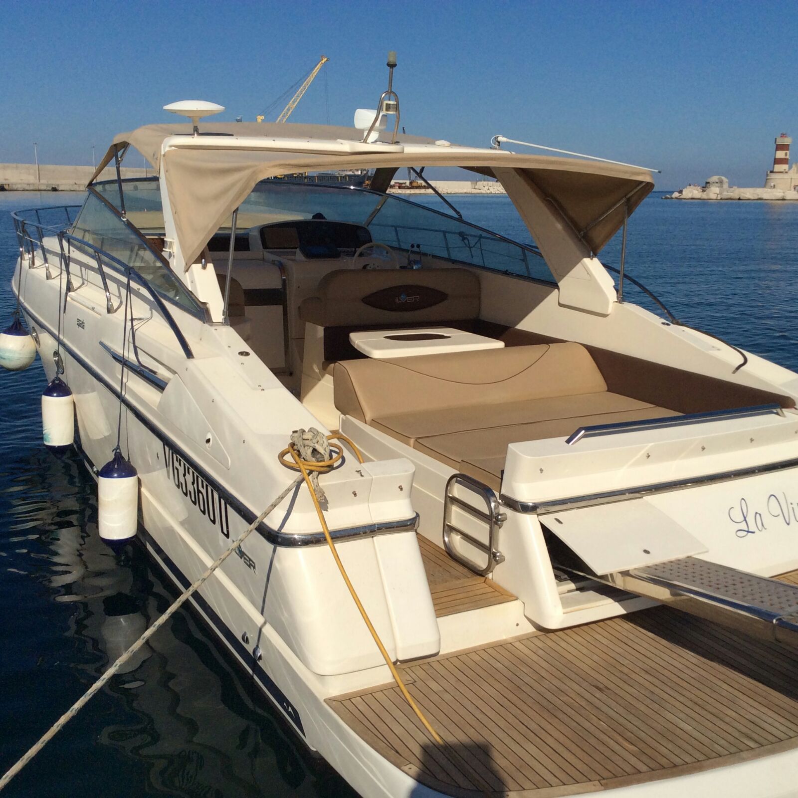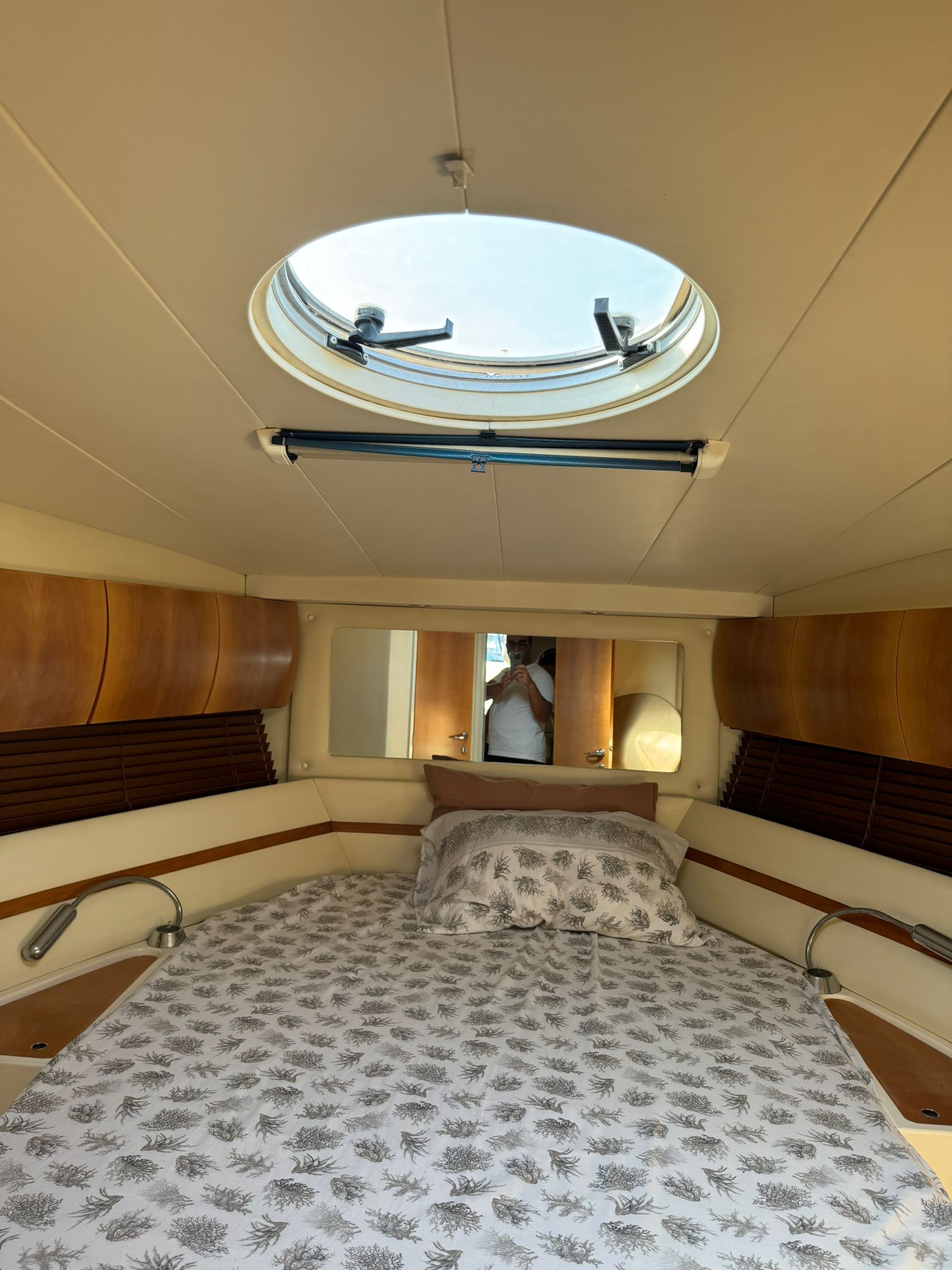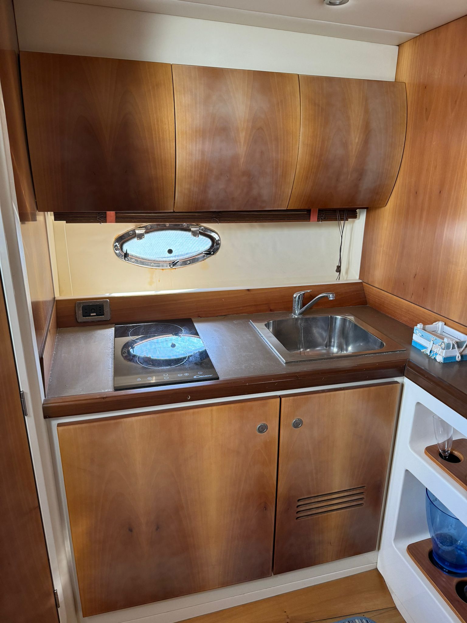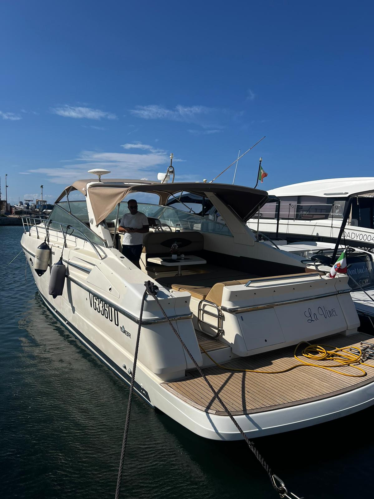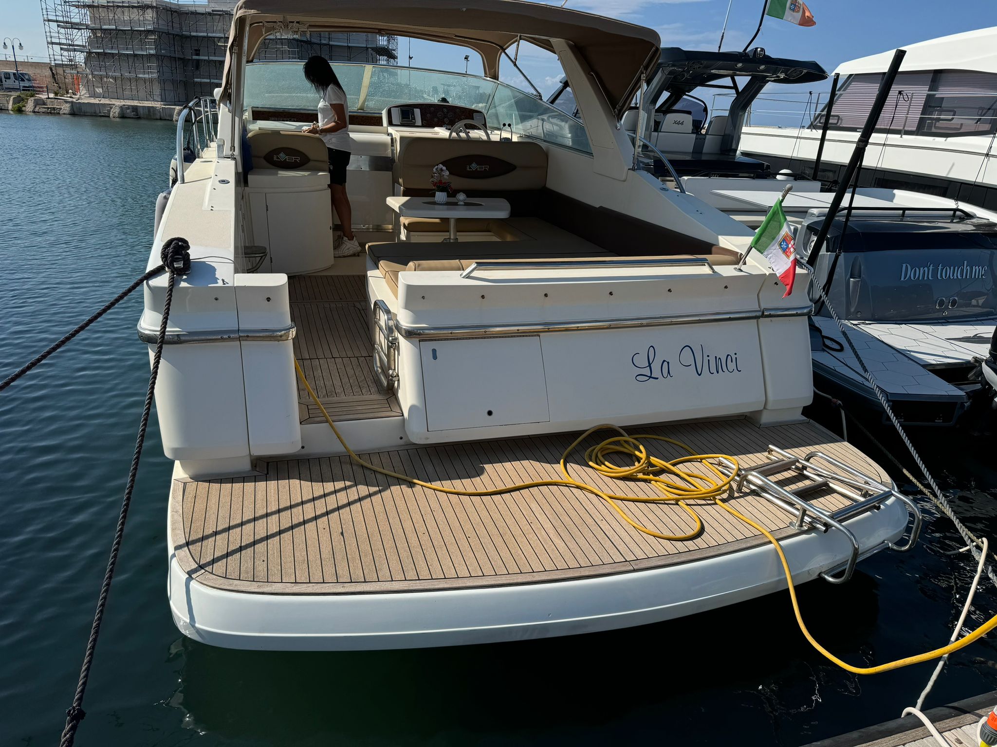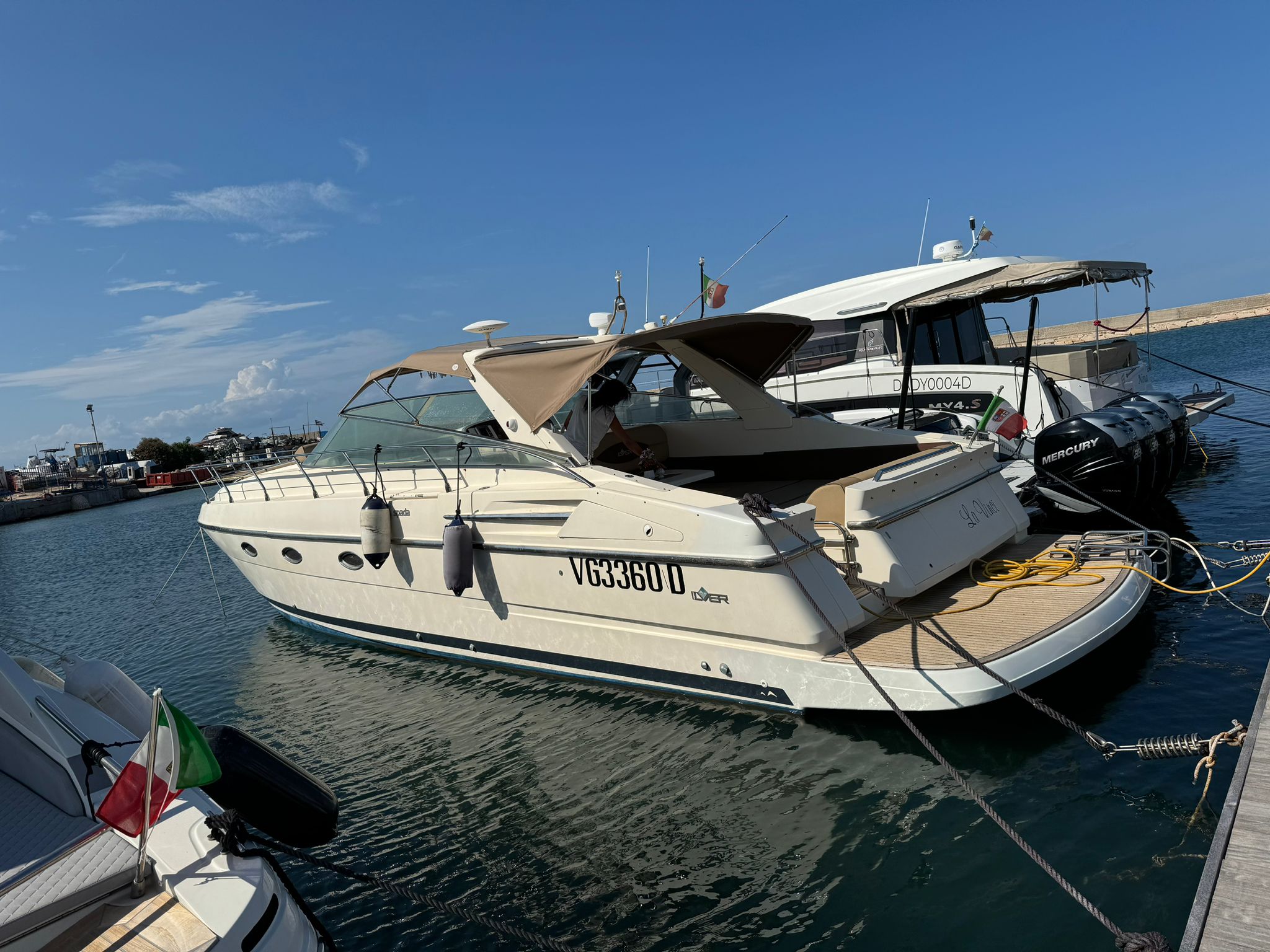 Ilver 39 Spada, Open con ampi spazi esterni ed interno. Motorizzato con 2 x 320 Mercruiser Diesel, con circa, anno 2002, N.2 cabine e N.2 bagni con dinette ed angolo cucina con pistre ad induzione,. lavello e frigorifero. Tendaggi e tendalino nuovo. Completo di elica di prua, cuscineria completa di prua e di poppa, aria condizionata, teak su piano di calpestio. Imbarcazione in ottimo stato completamente restrutturata.