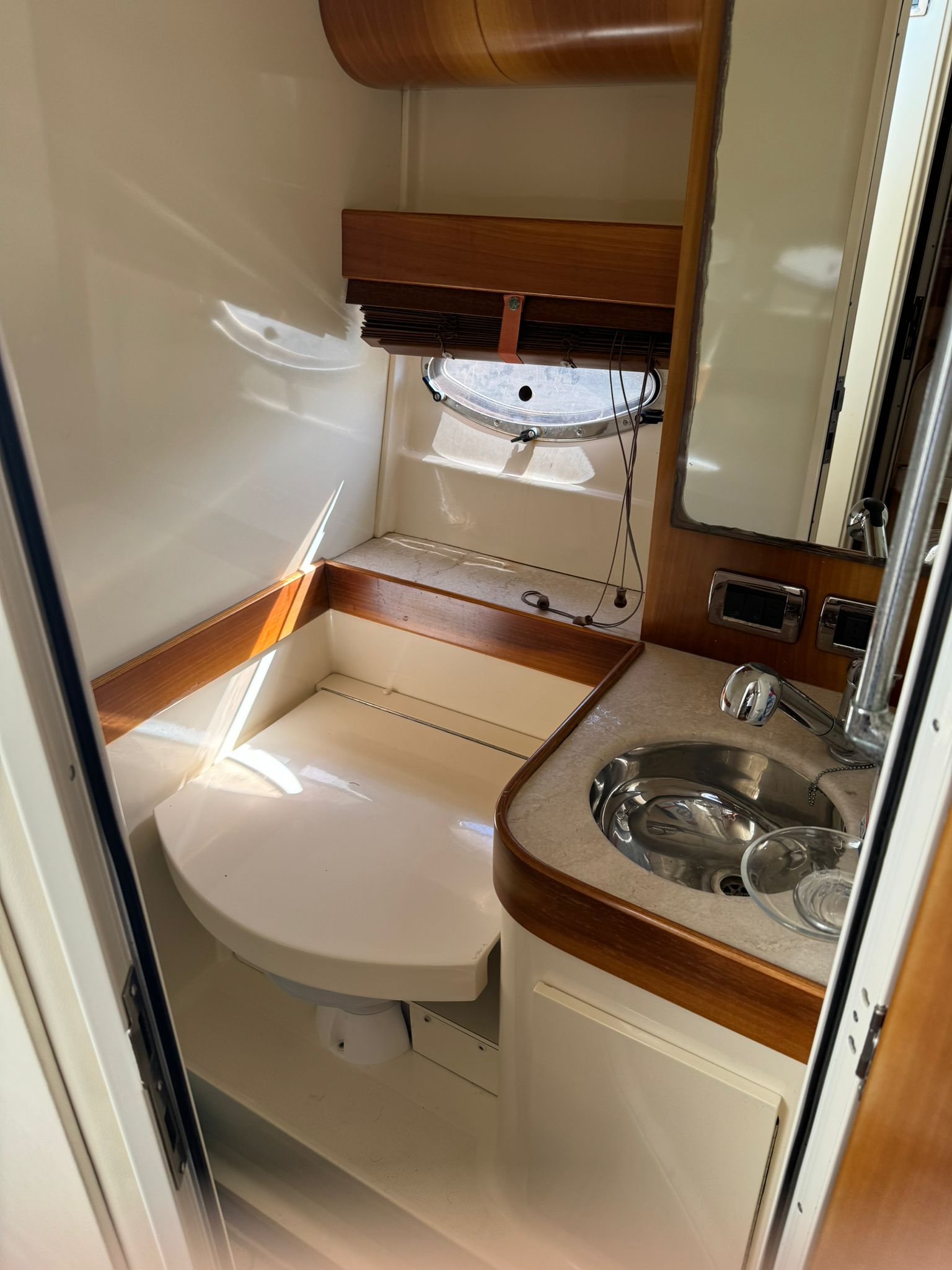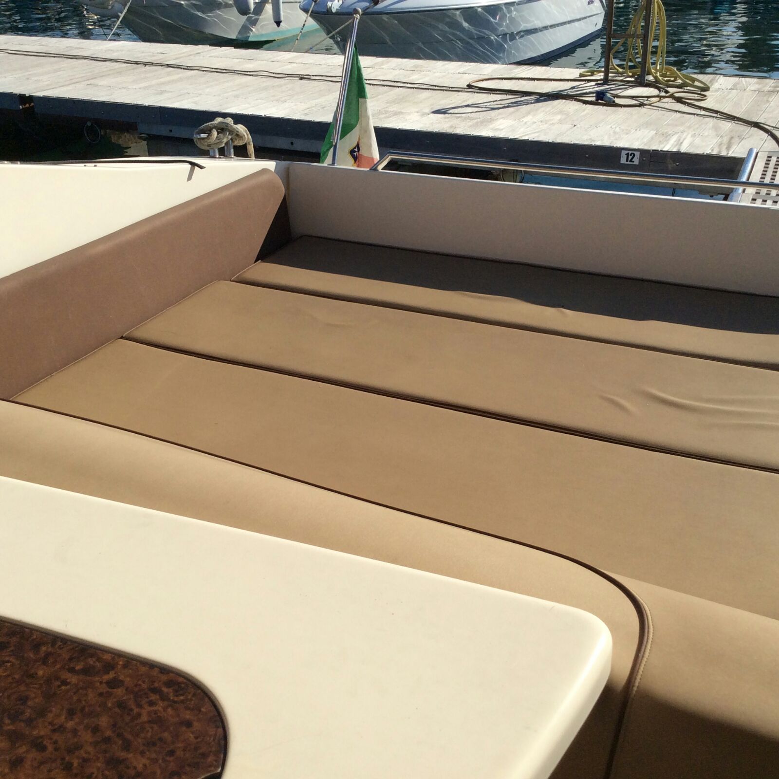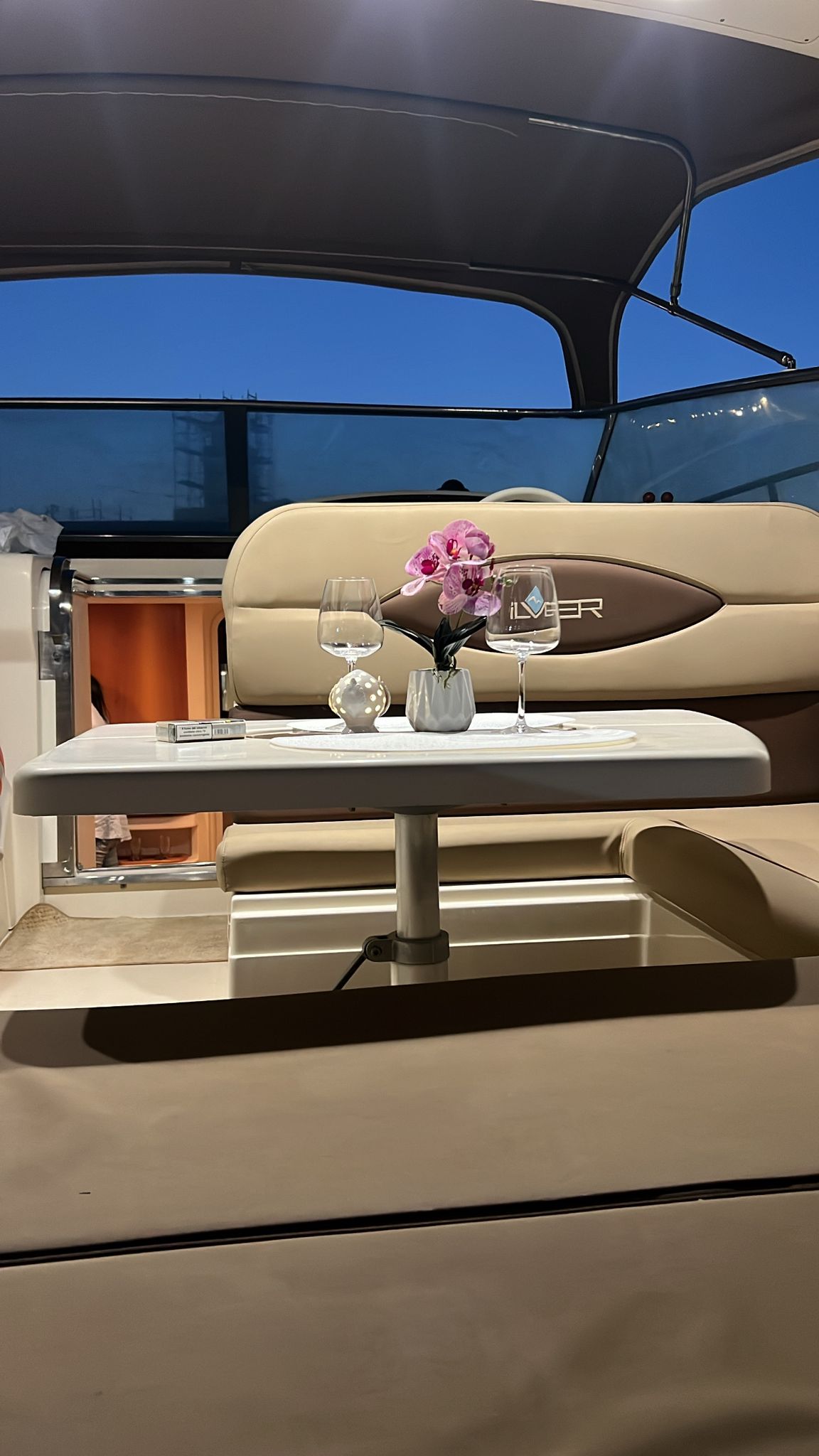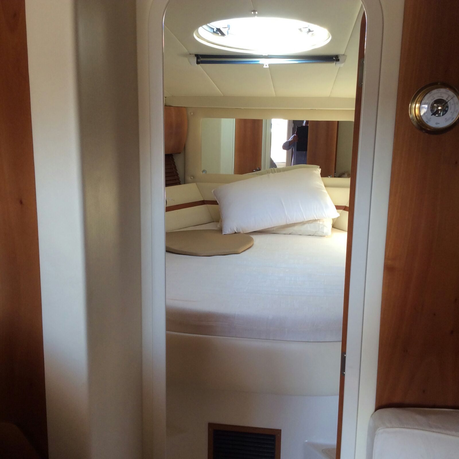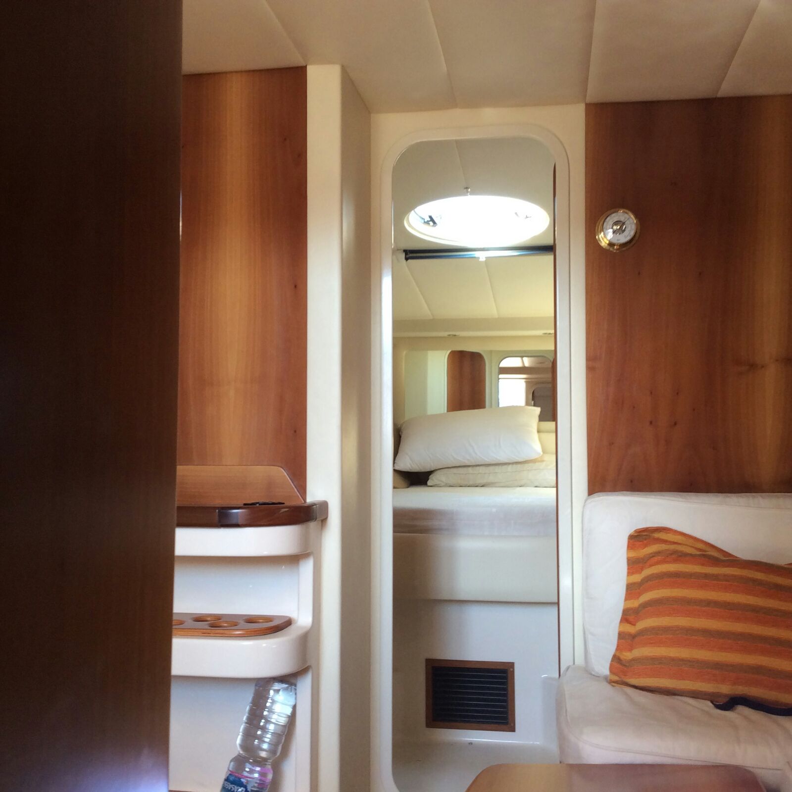 Ilver 39 Spada, Open con ampi spazi esterni ed interno. Motorizzato con 2 x 320 Mercruiser Diesel, con circa, anno 2002, N.2 cabine e N.2 bagni con dinette ed angolo cucina con pistre ad induzione,. lavello e frigorifero. Tendaggi e tendalino nuovo. Completo di elica di prua, cuscineria completa di prua e di poppa, aria condizionata, teak su piano di calpestio. Imbarcazione in ottimo stato completamente restrutturata.