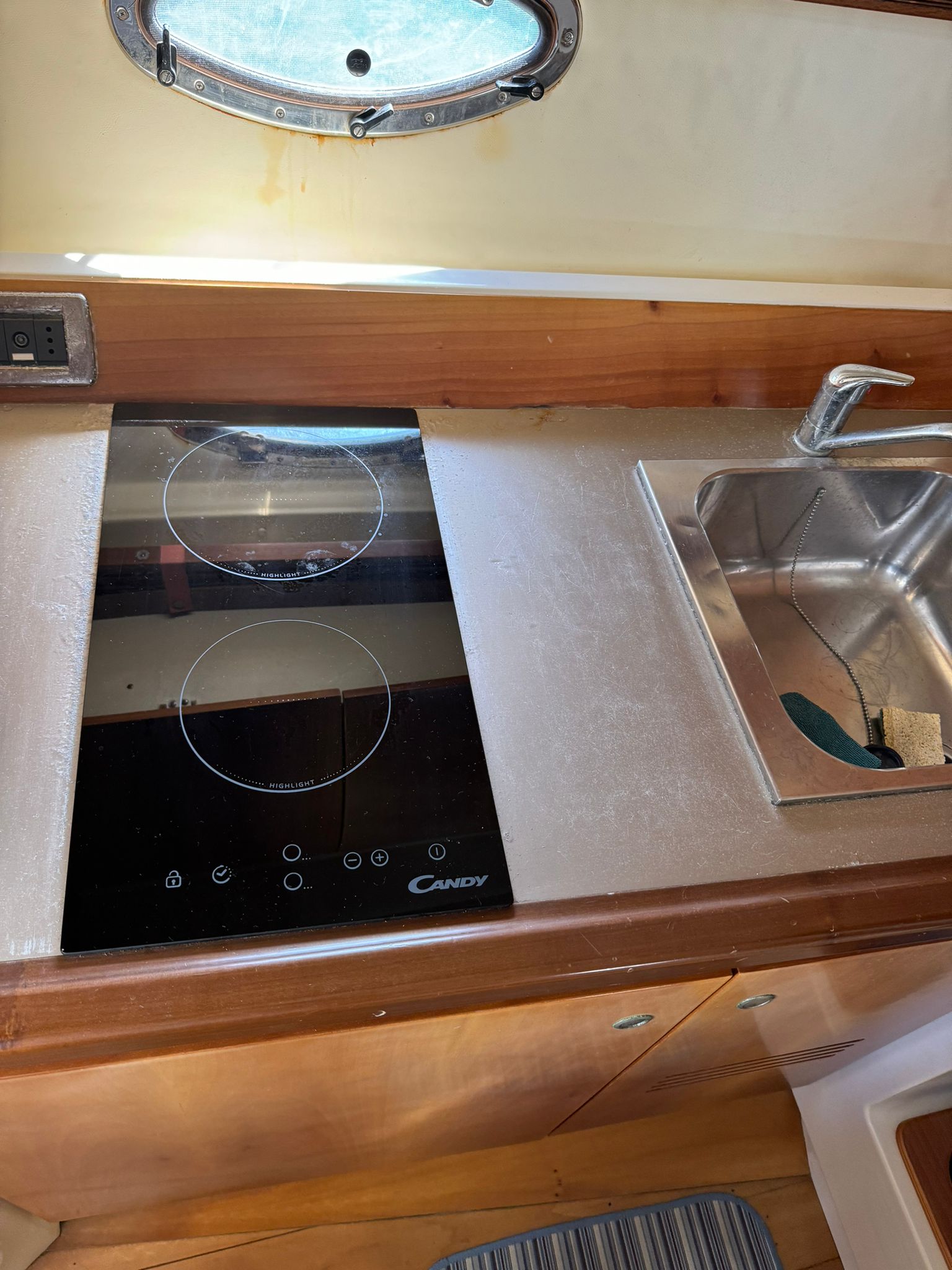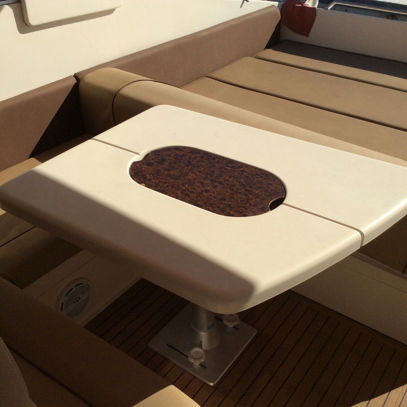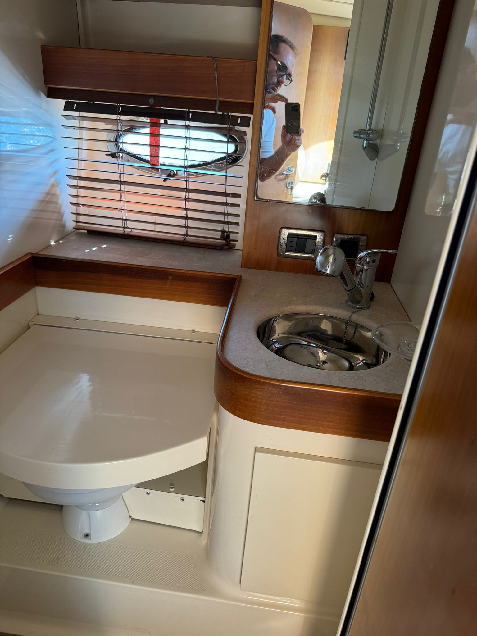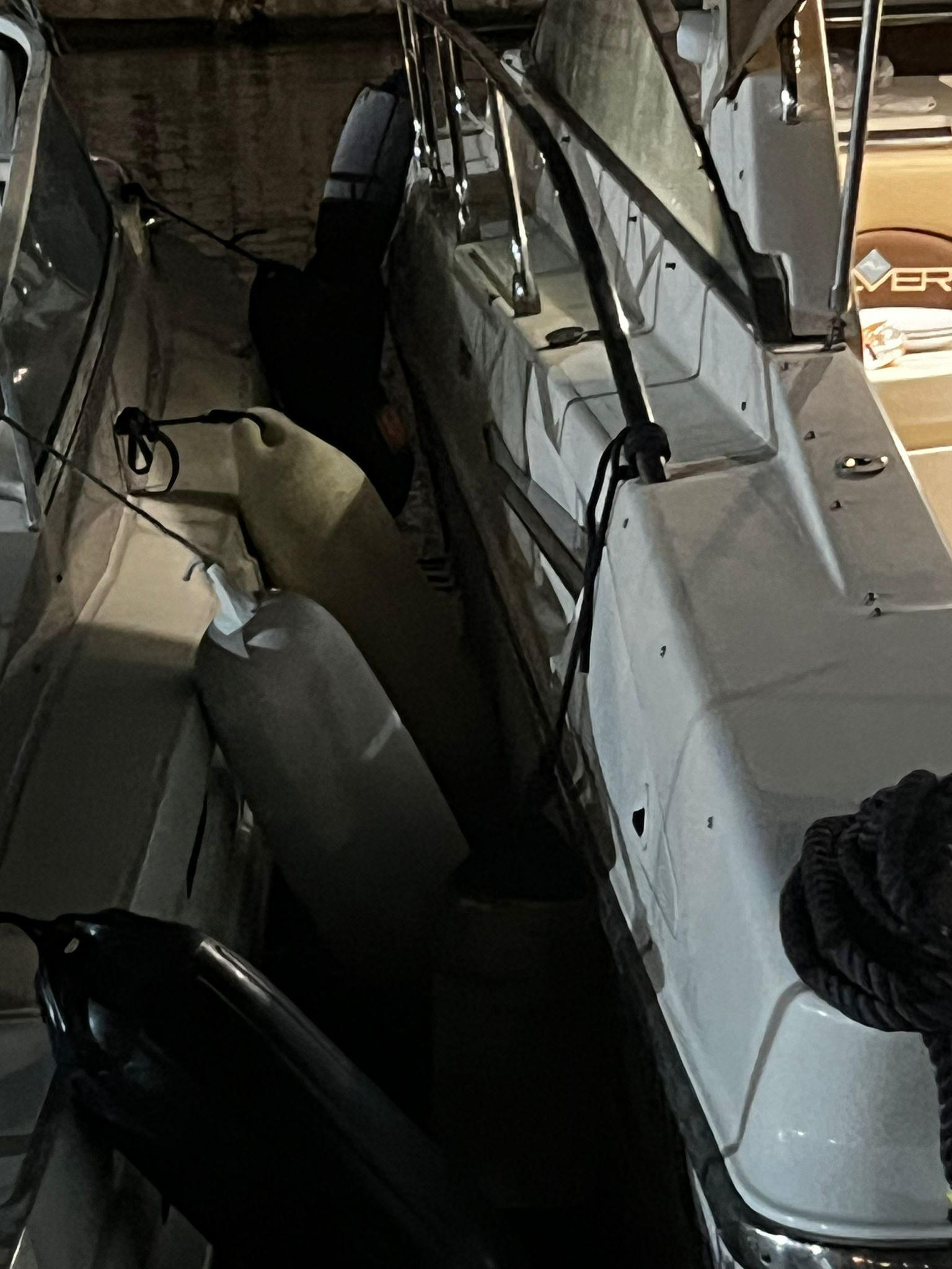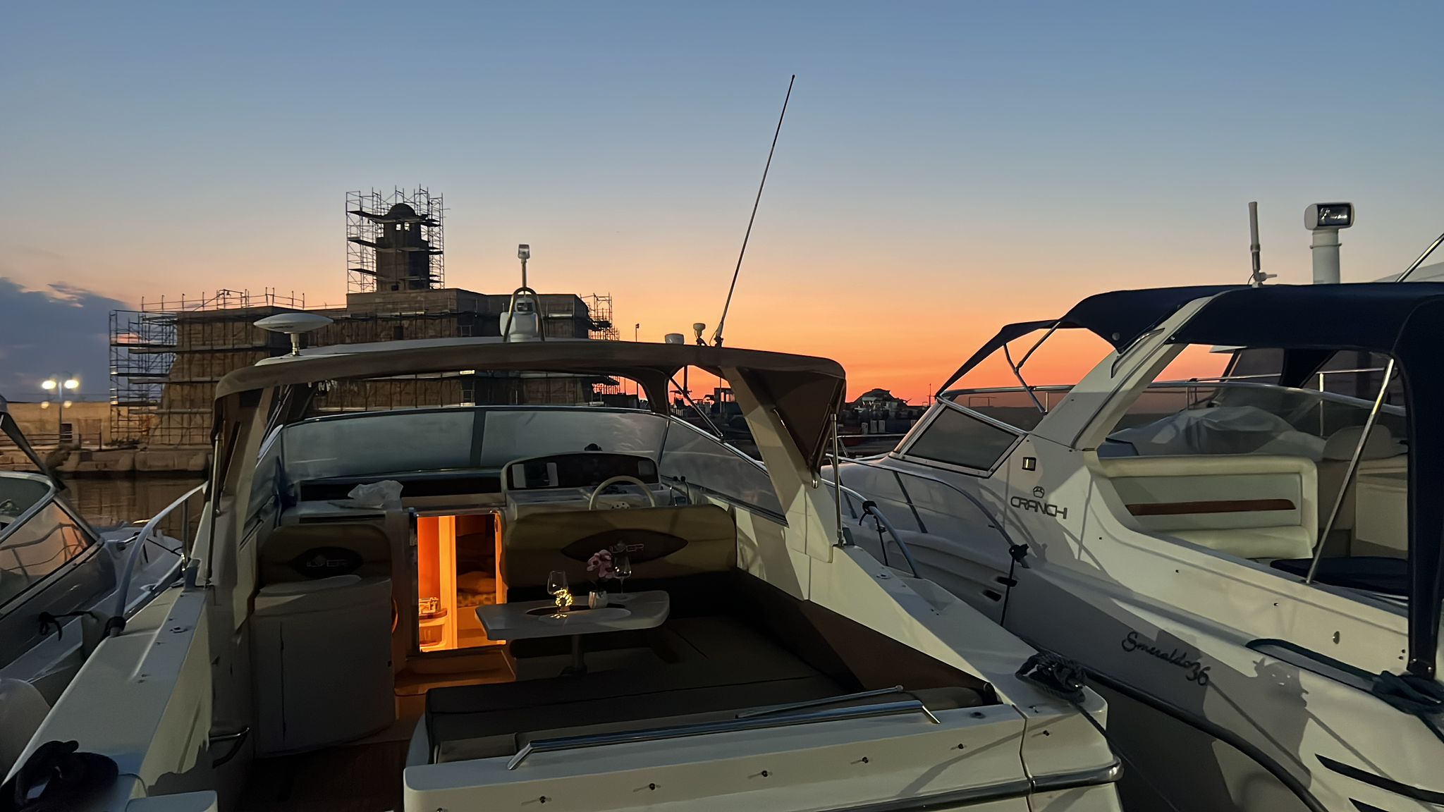 Ilver 39 Spada, Open con ampi spazi esterni ed interno. Motorizzato con 2 x 320 Mercruiser Diesel, con circa, anno 2002, N.2 cabine e N.2 bagni con dinette ed angolo cucina con pistre ad induzione,. lavello e frigorifero. Tendaggi e tendalino nuovo. Completo di elica di prua, cuscineria completa di prua e di poppa, aria condizionata, teak su piano di calpestio. Imbarcazione in ottimo stato completamente restrutturata.