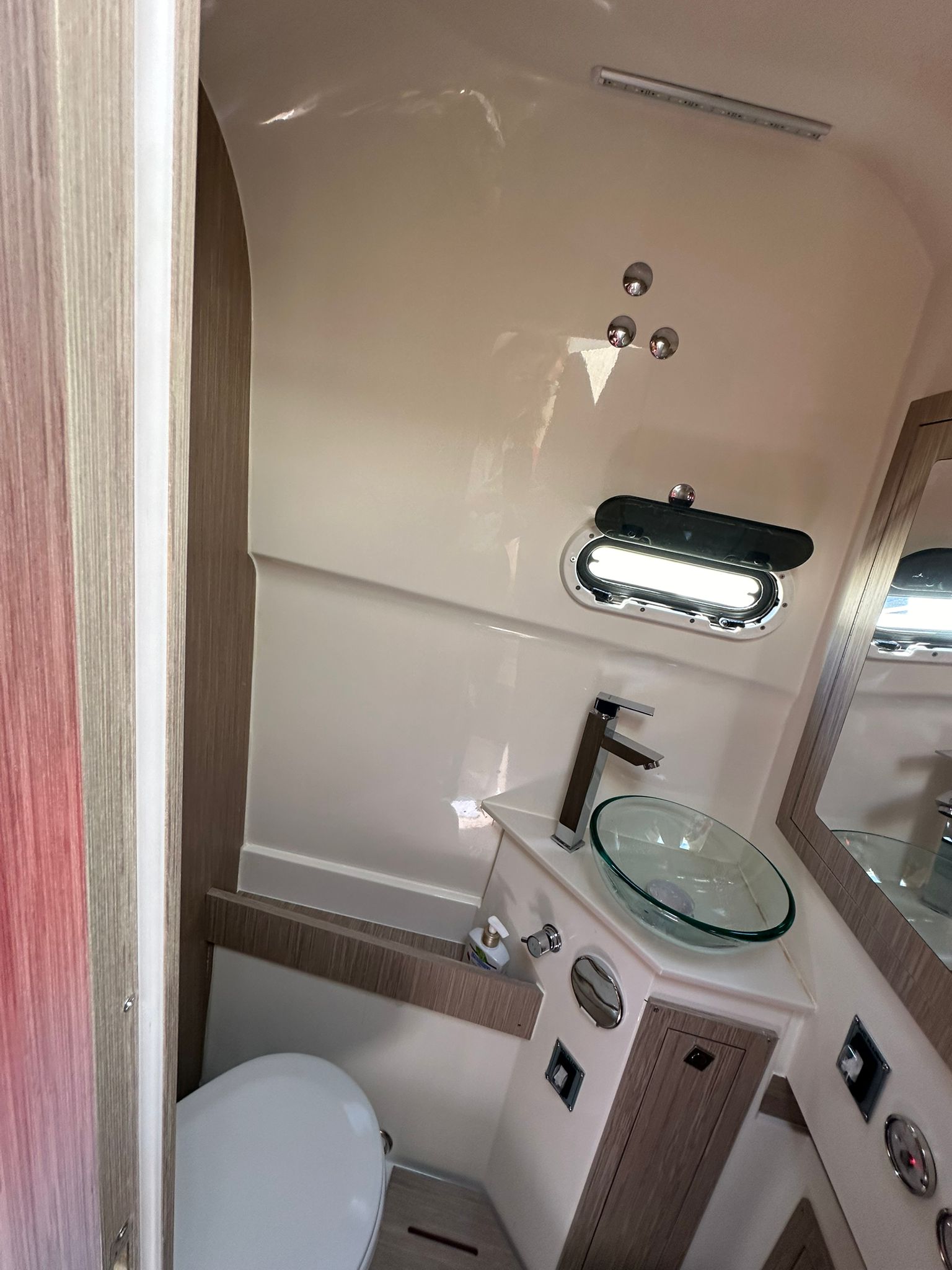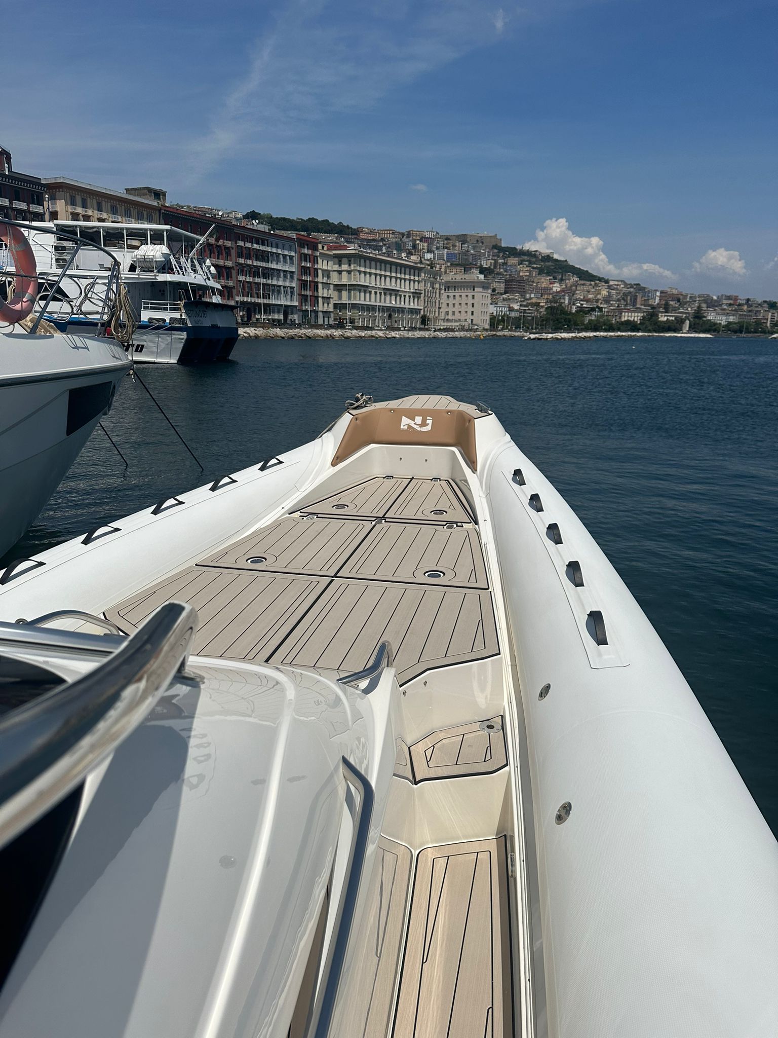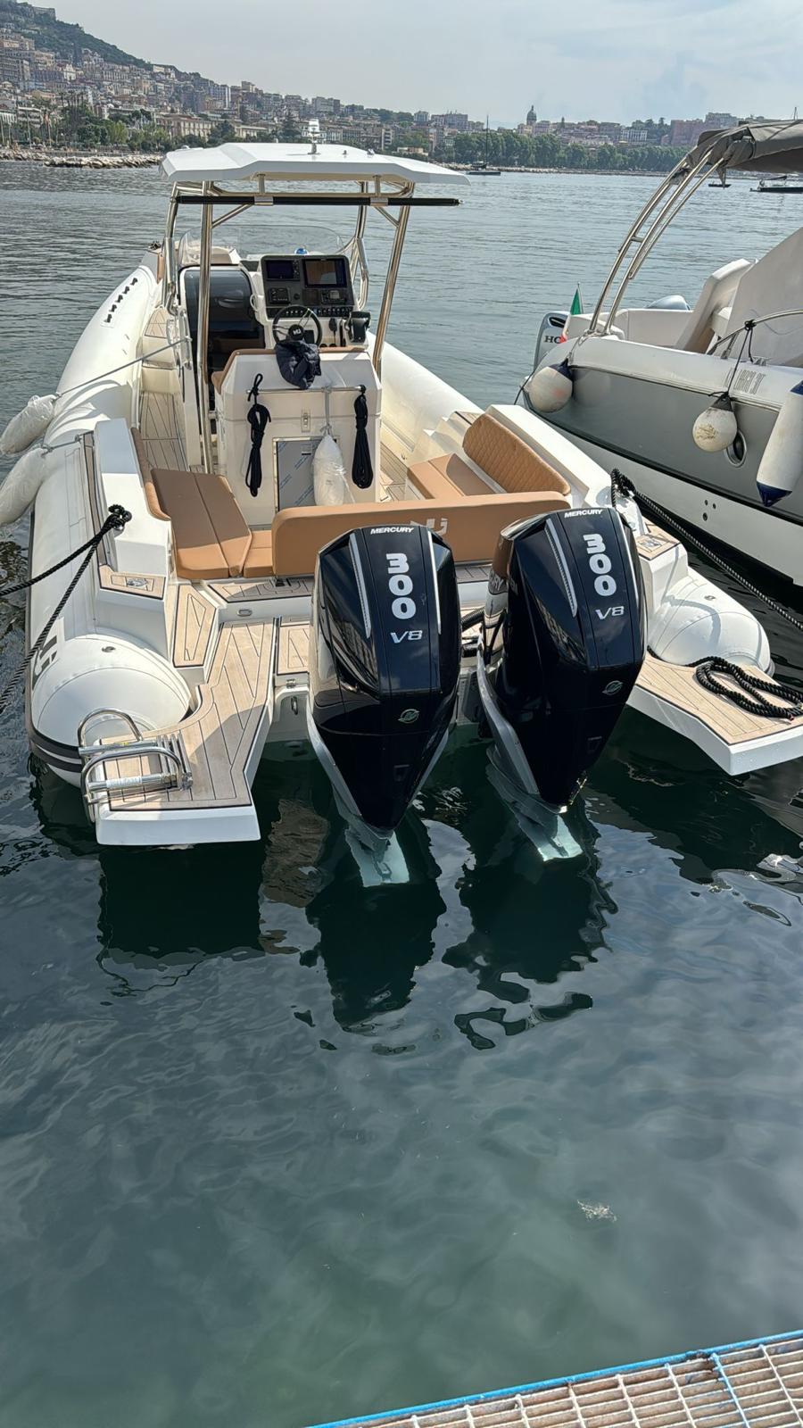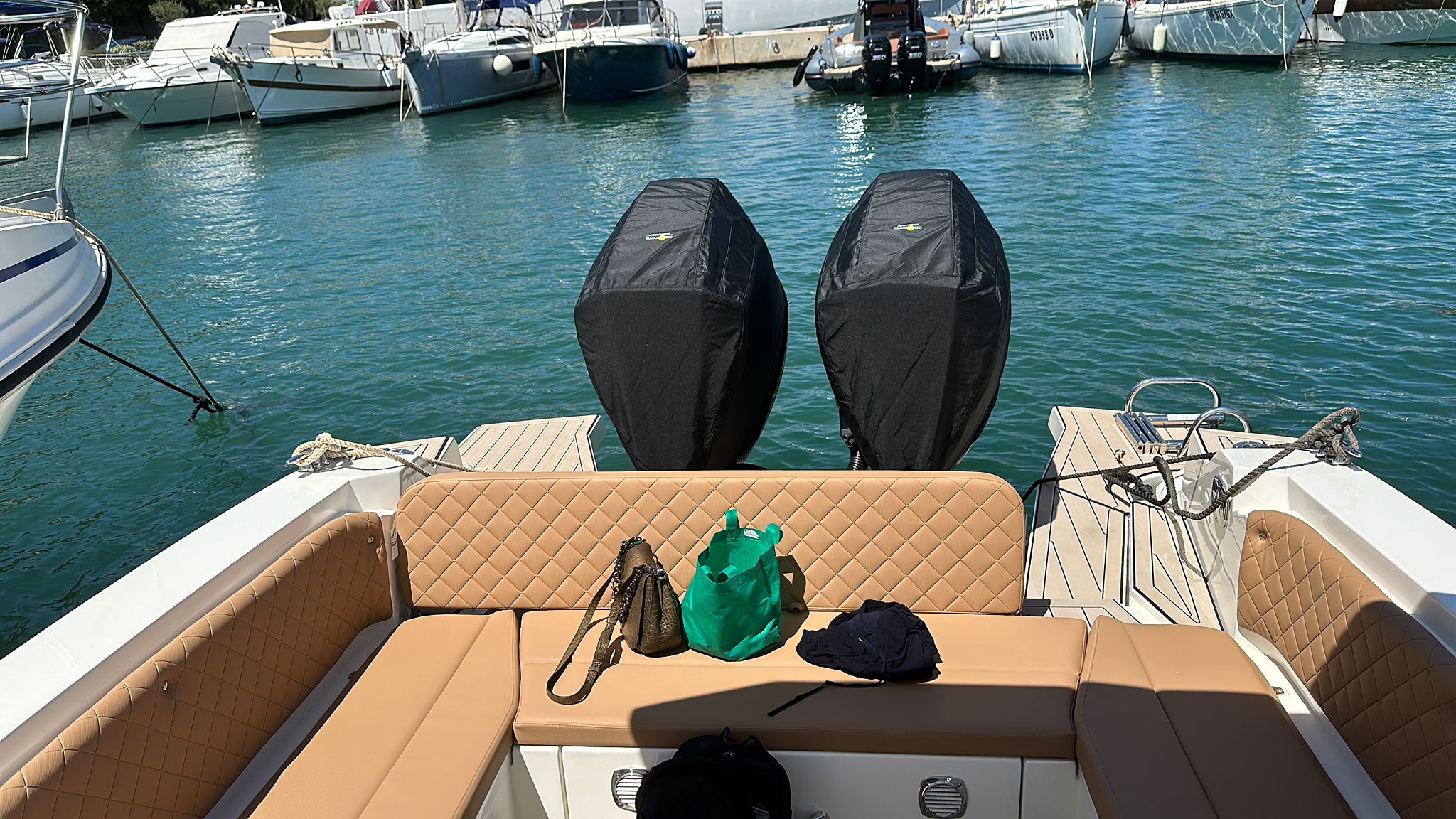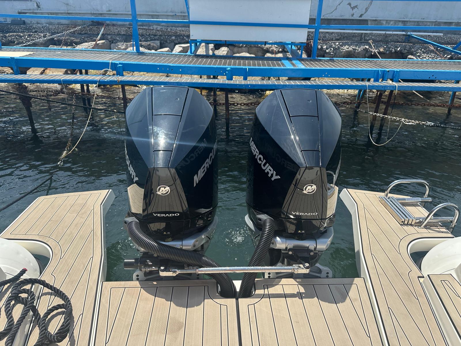 Battello Nuova Jolly 33 Prince, anno Giugno Giugno 2024 con pochissime ore di navigazione. Versione T Top con tenda copertura pozzetto con pali in carbonio. Angolo cucina esterno con lavello, N.2 fuochi a gas, frigo 42Lt . Interni composti da cabina con letto di prua, locale bagno separato con wc elettrico e lavello con doccino estraibile. Ampie spiaggetta di poppa con scaletta bagno. VHF, GPS con ecoscandaglio Simrad, Radio Hertz con altoparlanti in pozzetto.