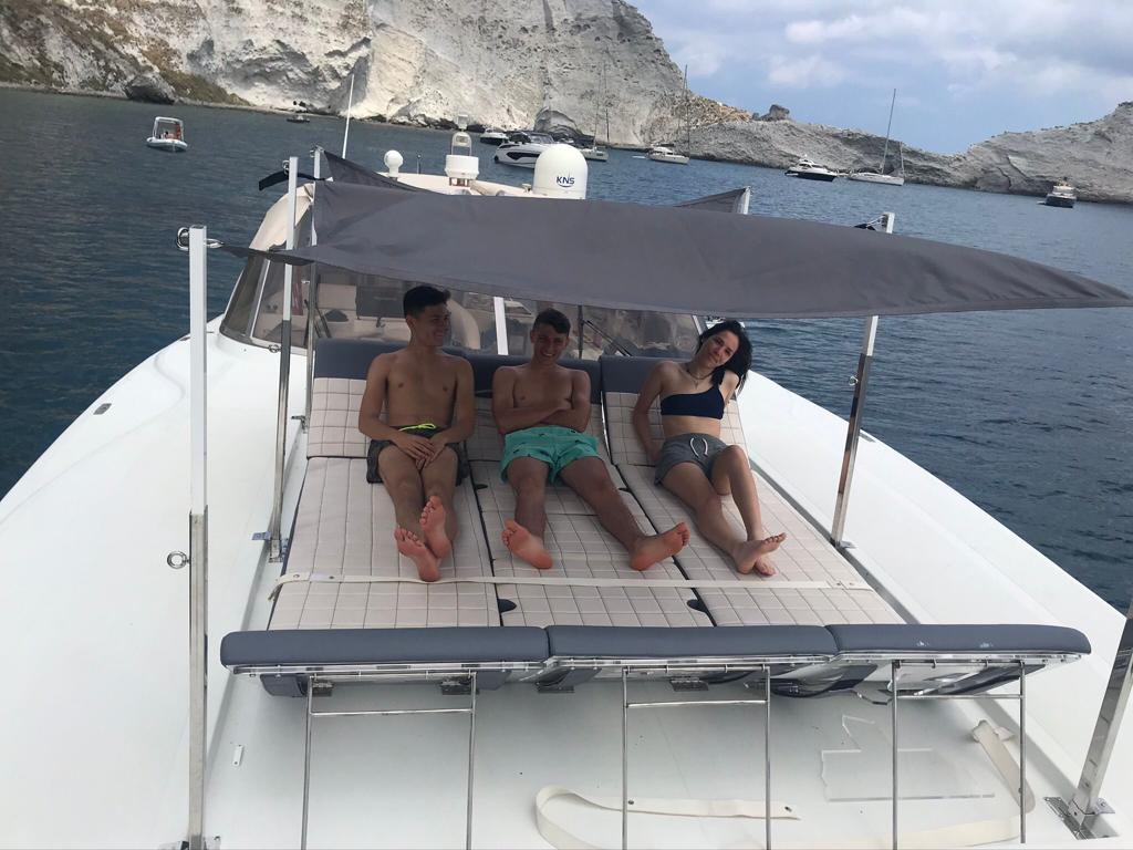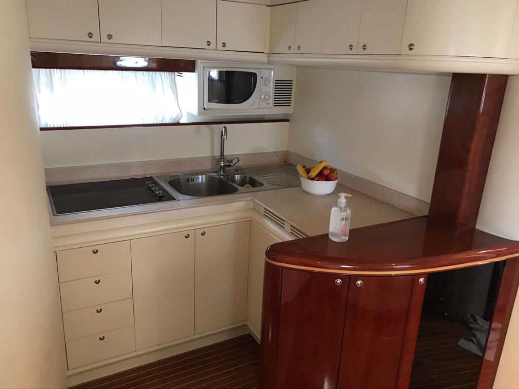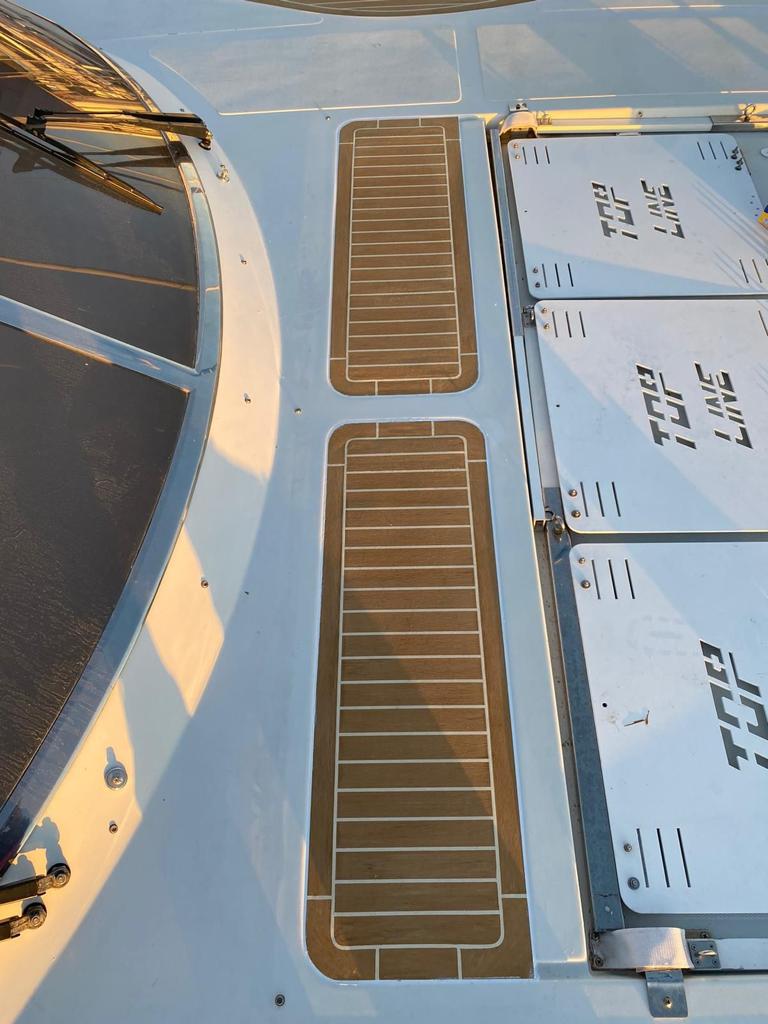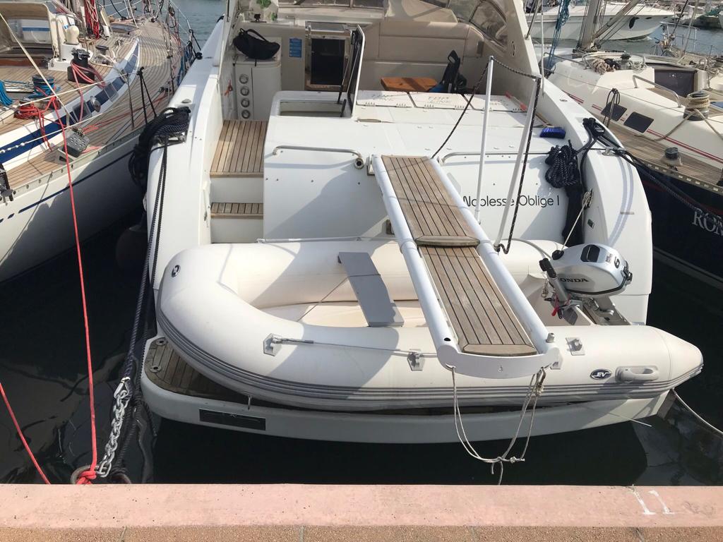 Rizzardi cr 50 Top Line, anno 2001, motorizzata con 2 x 680 cv Man velocità crociera 29/30 nodi vel Max 34/35 nodi. Immatricolazione 2005 barca dimostrativa del cantiere full optionals , generatore, aria condizionata, versione 3 cabine e 3 bagni più cabina marinaio a prua. Doppia cucina interna/esterna doppi frigoriferi int/est , doppio caricabatterie, doppio impianto batterie, 3 serbatoi inox nuovi acqua tot 750 litri . Refitting esterno 2022/2023 , 9 sdraio a scomparsa regolabili, tendalino completo nuovo , plancetta poppa teak da rifare.